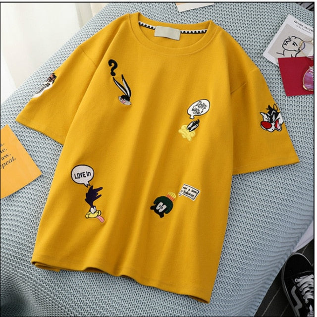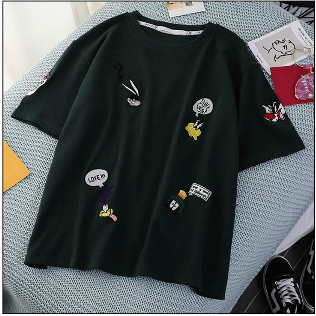 Fashion Cartton Print Casual Women T-Shirt